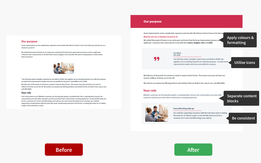 Clear subheadings help direct attention to key messages.